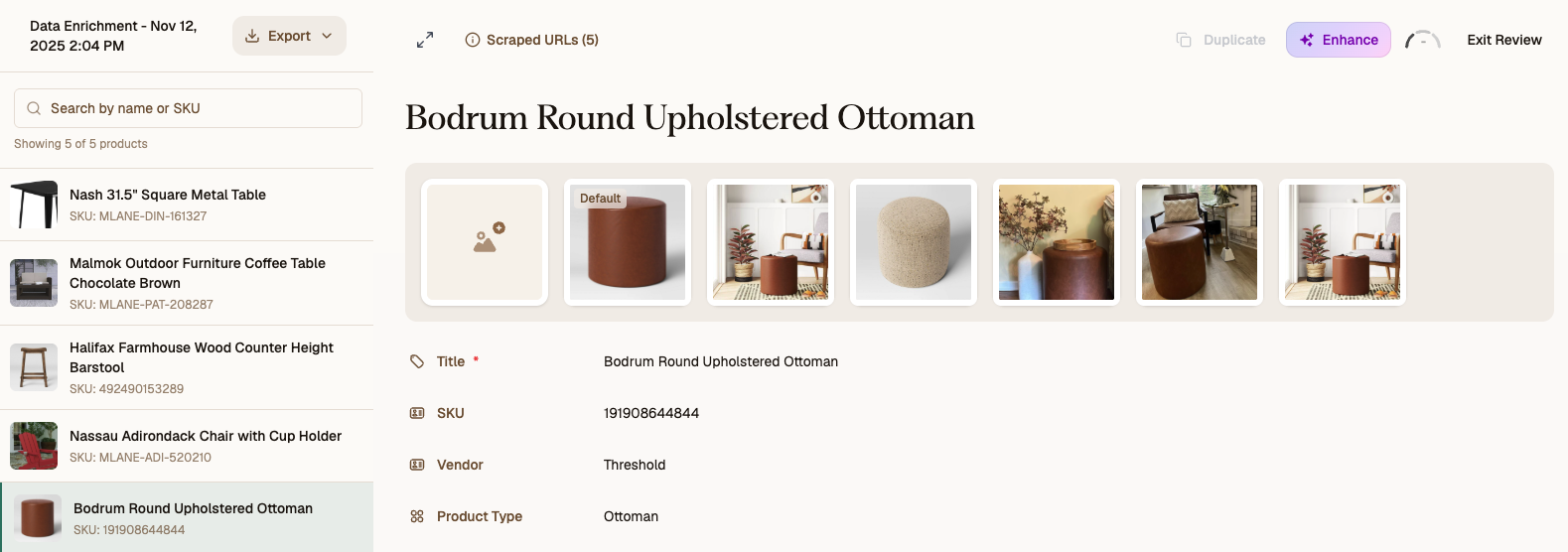 Review Enriched Product Data in Bulk